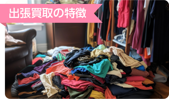 - 出張買取では、査定員がご自宅までお伺いします。お家で簡単に売却ができるため、手間が少なく、追加査定も可能です。