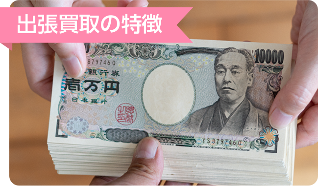 その場で、即現金化 - 買取金額は出張当日に、お客様にご納得いただけた場合、その場ですぐに現金でお支払いさせていただきます。